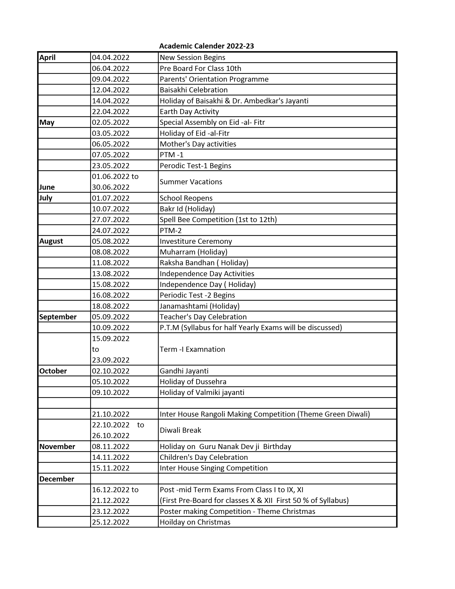 Academic Calender